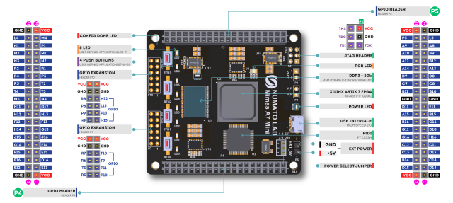 Artix 7 FPGA (XC7A35T-1FTG256C) を使用しています。最大70点のI/Oを使うことができます。