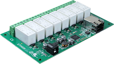 Ethernet(LAN、インターネット)に接続すると、離れた場所のパソコンからリレーのON・OFF制御を行うことができます。ルーターを設定することにインターネット経由で遠隔地からもON・OFF操作を行うことができます。
